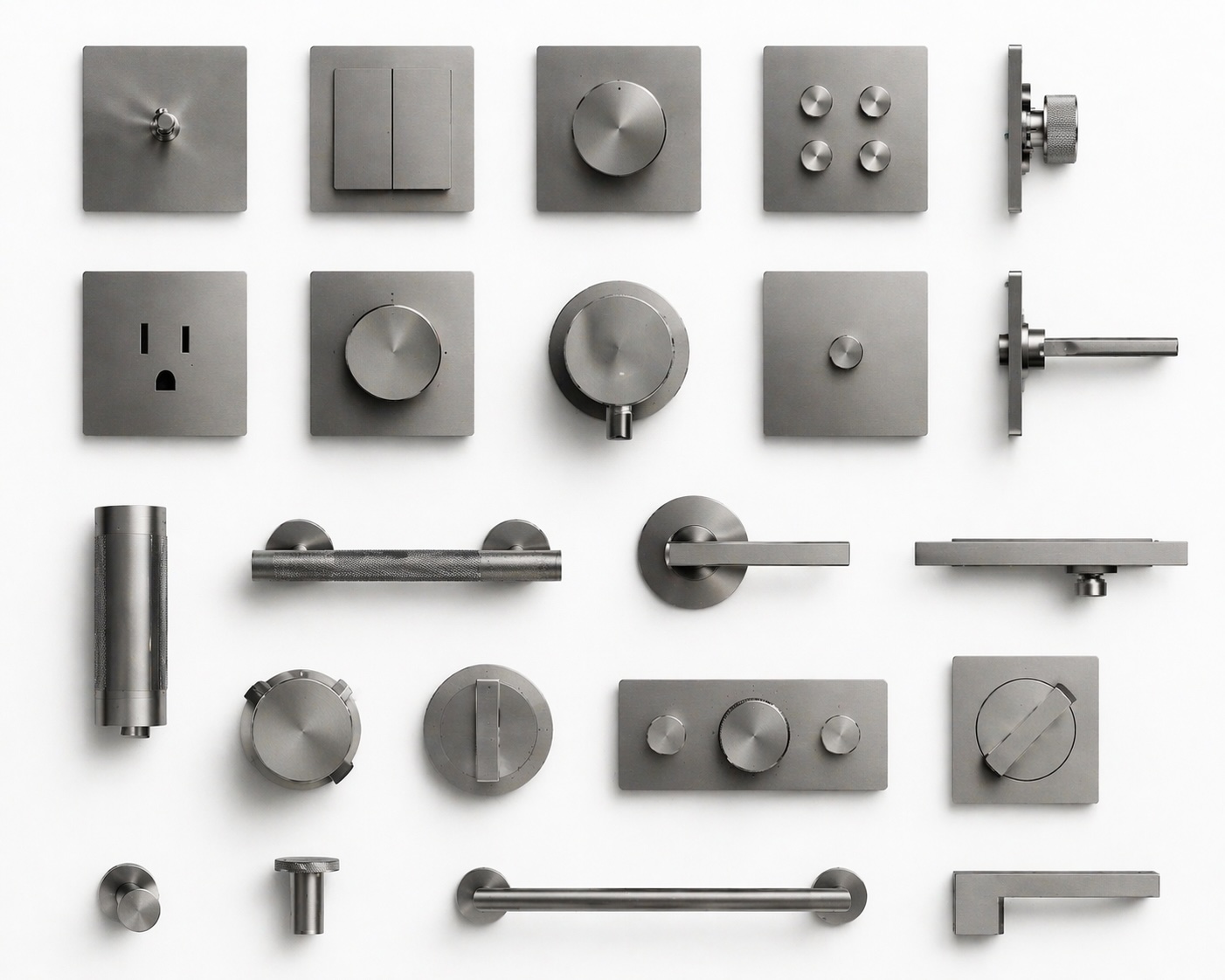 Brushed aluminum, abs, and restrained functional colors.